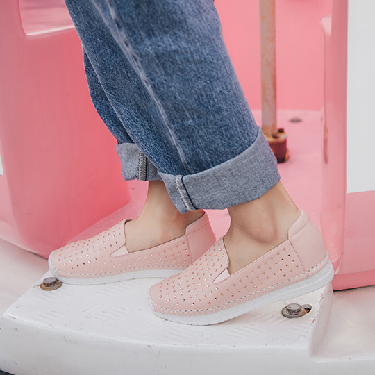 全真皮編織閃鑽休閒鞋100364 - 甜美粉, 40