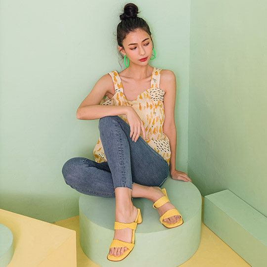 / 寬版編織雙紐帶方頭中跟涼鞋 200311