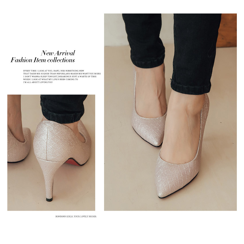 舒芙蕾系列 璀璨菱格真皮尖頭高跟鞋 300375
