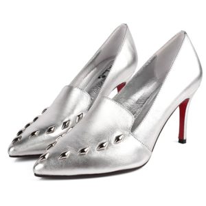 舒芙蕾系列 全真皮鉚釘經典高跟鞋 400202 - 性感銀, 39