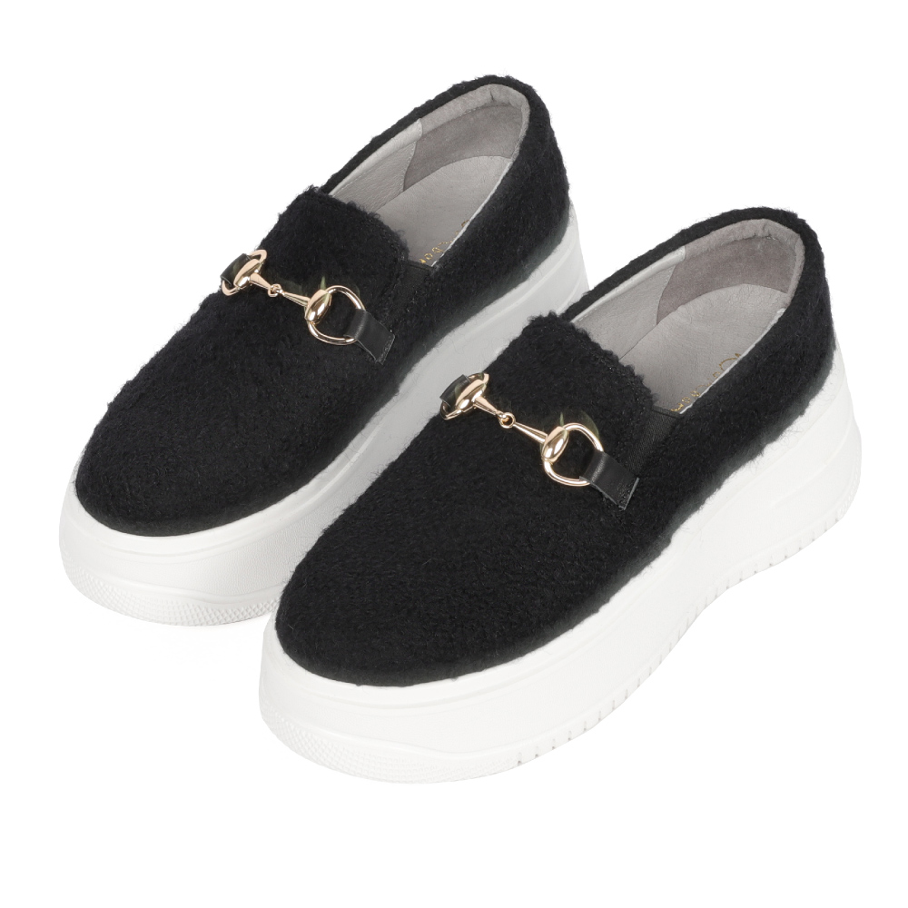 暖心毛呢馬銜釦真皮厚底懶人鞋400280 - 黑, 35