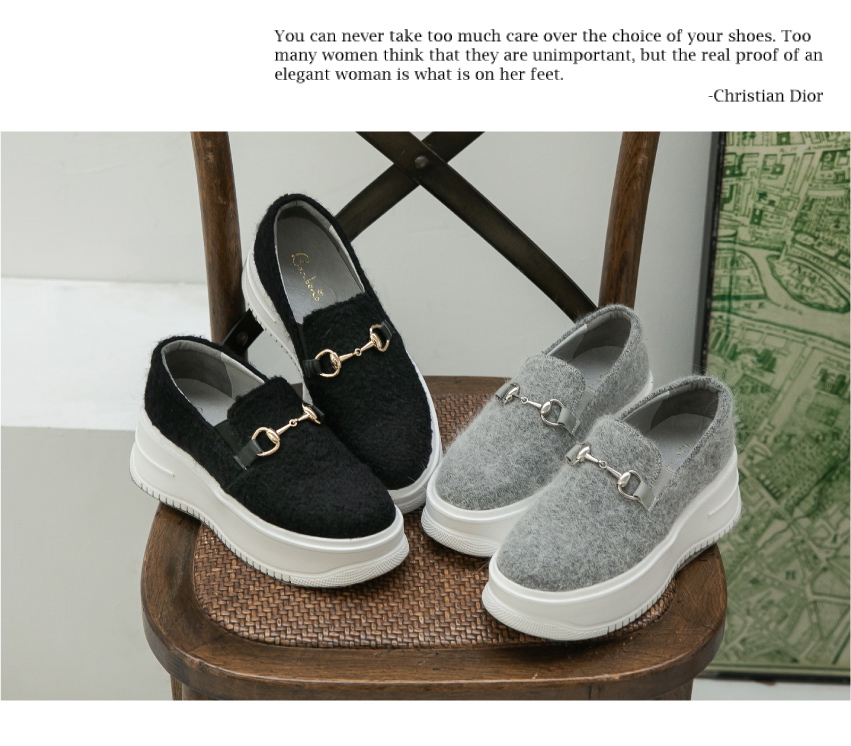 暖心毛呢馬銜釦真皮厚底懶人鞋400280