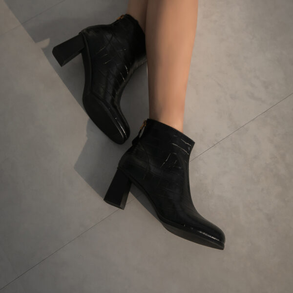 ღ大牙聯名款ღ時尚日常鱷魚紋粗跟短靴 400292 - 黑, 37