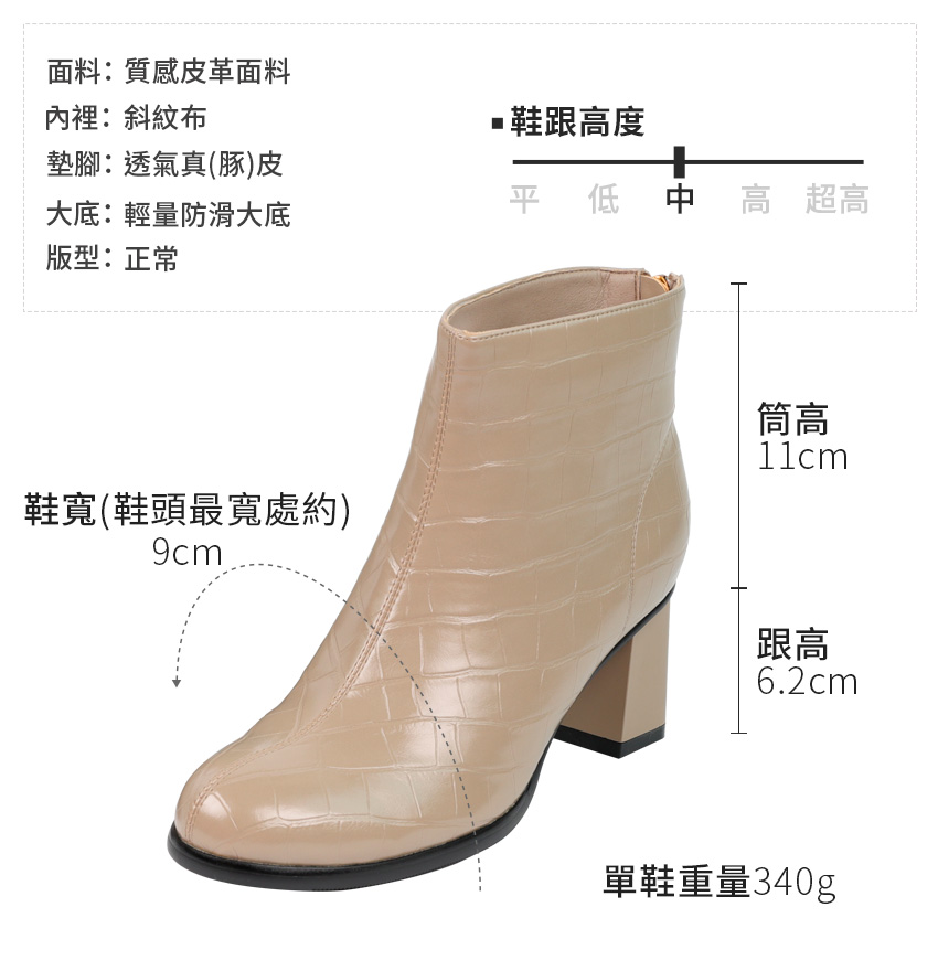 ღ大牙聯名款ღ時尚日常鱷魚紋粗跟短靴 400292